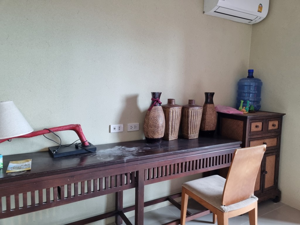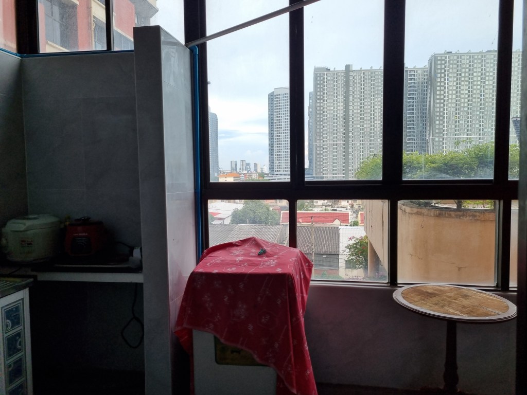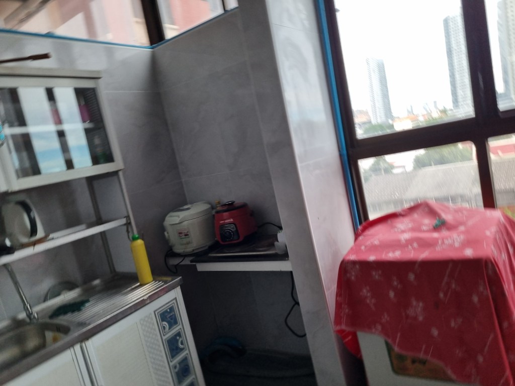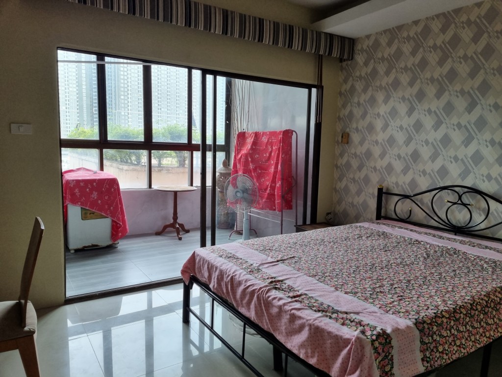 What’s in the room Bed with mattress, large wardrobe, sofa set, 1 air conditioner, refrigerator, washing machine, electric stove, TV table.