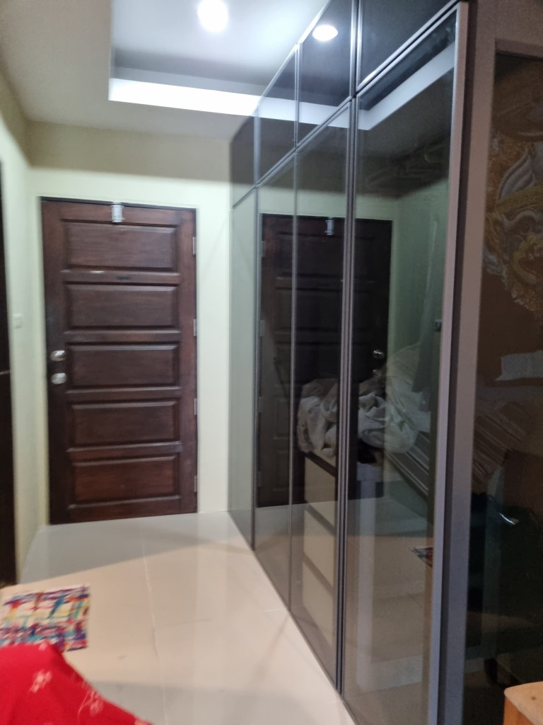 สิ่งที่มีในห้อง เตียงพร้อมที่นอน, ตู้เสื้อผ้าขนาดใหญ่, ชุดโซฟา, แอร์ 1 ตัว, ตู้เย็น, เครื่องซักผ้า, เตาไฟฟ้า, โต๊ะวาง TV