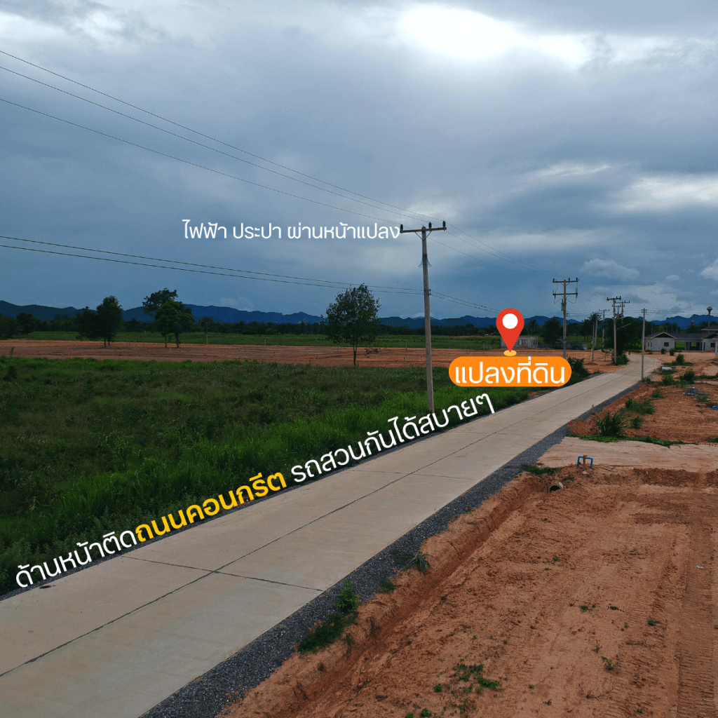 100 ตารางวา ราคาเริ่มต้นที่ 4 แสนกว่าบาท ถมดินให้แล้ว ทำถนนคคอนกรีต